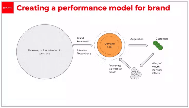 The company developed a strategy to build a “demand pool” of future customers through brand investment, ultimately optimising its budget to a mix of 60% brand and 40% performance. This wasn’t about following a generic rule but was driven by their own data and insights. By 2020, the results were striking: 75% of Gousto’s customer acquisition became organic, with only 25% from paid ads. This shift demonstrated how brand building can create a robust reservoir of future customers and a more reliable revenue stream, proving that a strong brand isn’t a luxury—it’s a foundation for sustained cash flow.