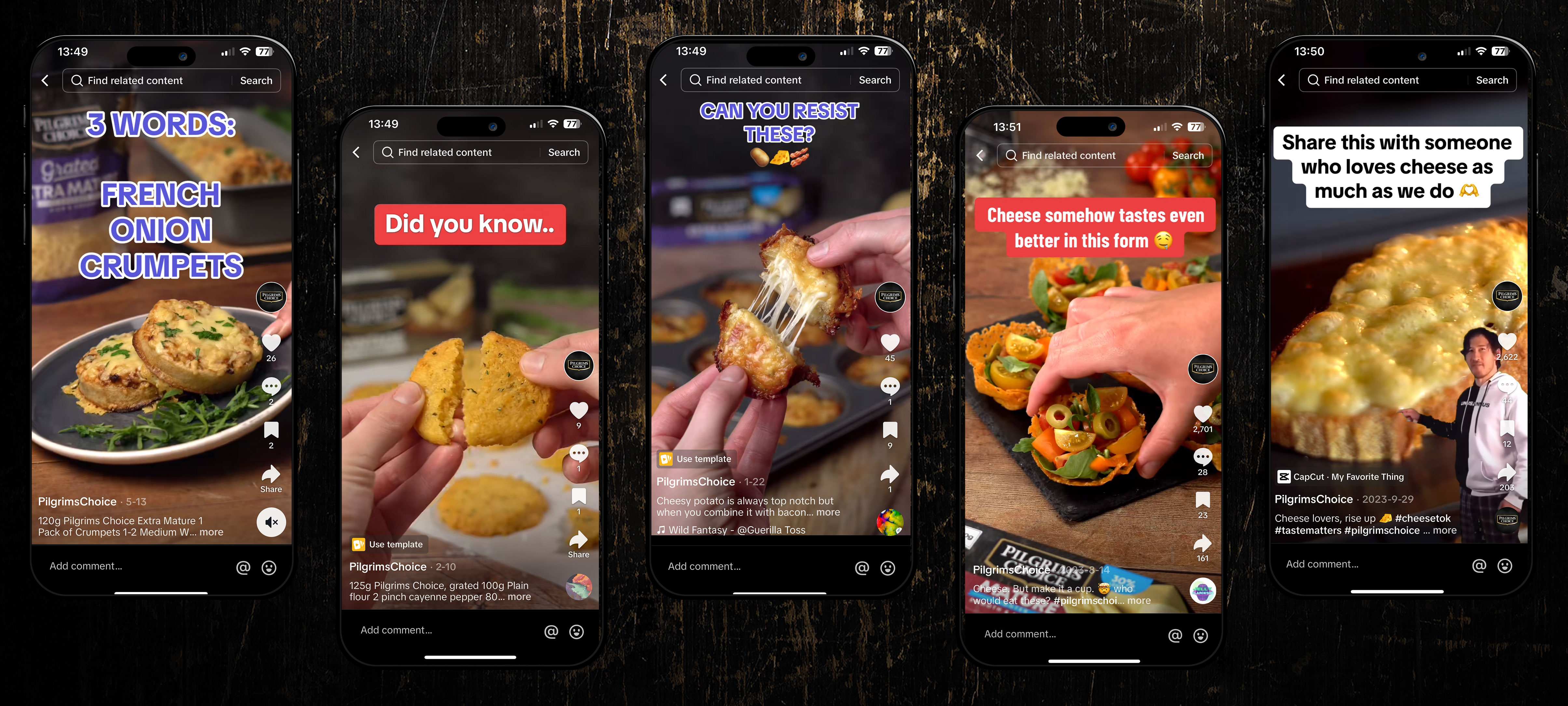 We got to work on identifying our core target audiences, creating a strategy around recipes and video content. We wanted to act less like a brand and more like a food publisher, with cheesy food porn at the heart of our comms. In March 2022 we launched Pilgrims Choice on TikTok, starting to reach foodies of the future in order to continue to build long term brand.